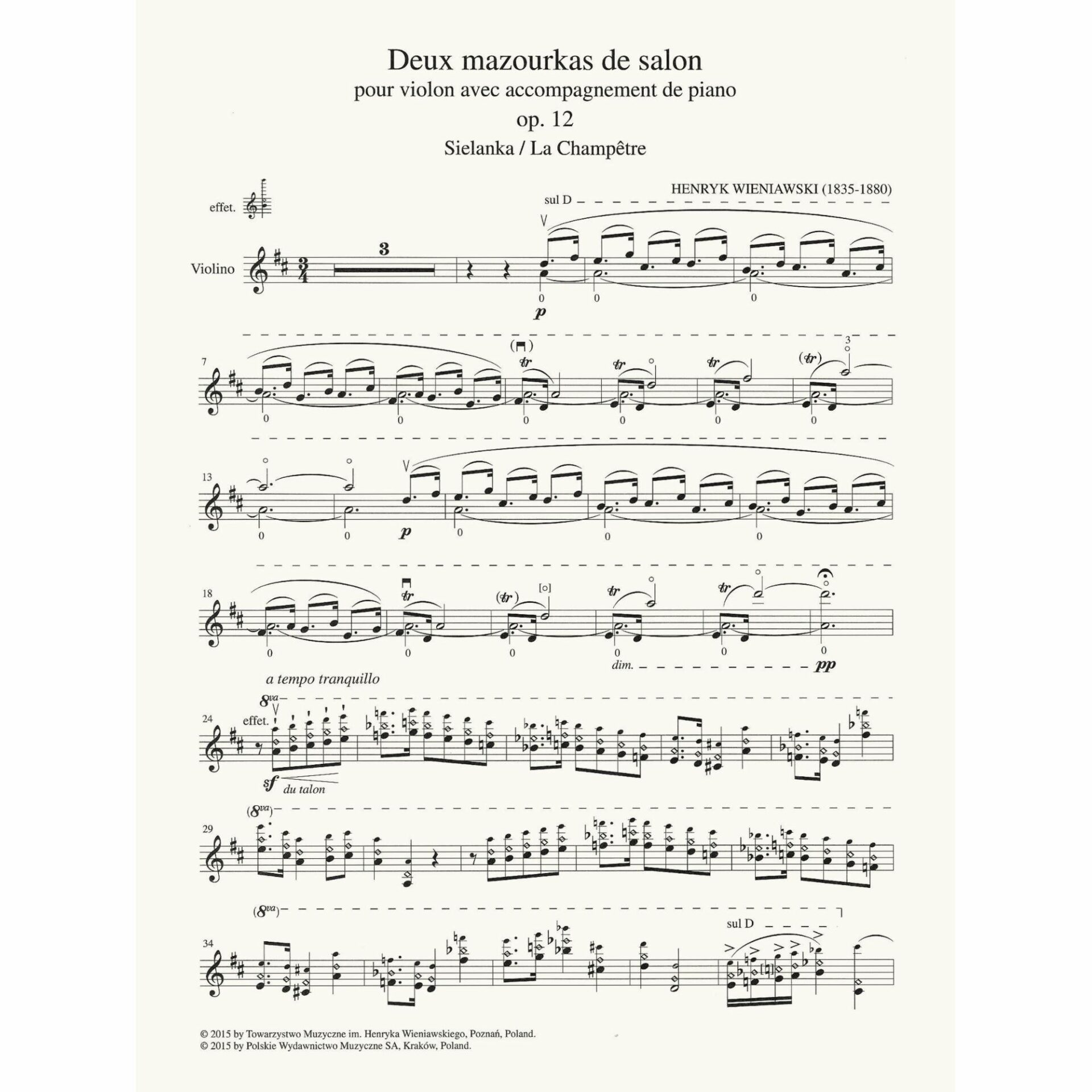 2 Mazurkas de Salon: Sielanka (La Champetre) and Piesn polska (Chanson polonaise) for violin and piano, op. 12. Henryk Wieniawski. Edited by Zofia Chechlinska and Jaroslaw Zolnierczyk. Published by PWM Edition.