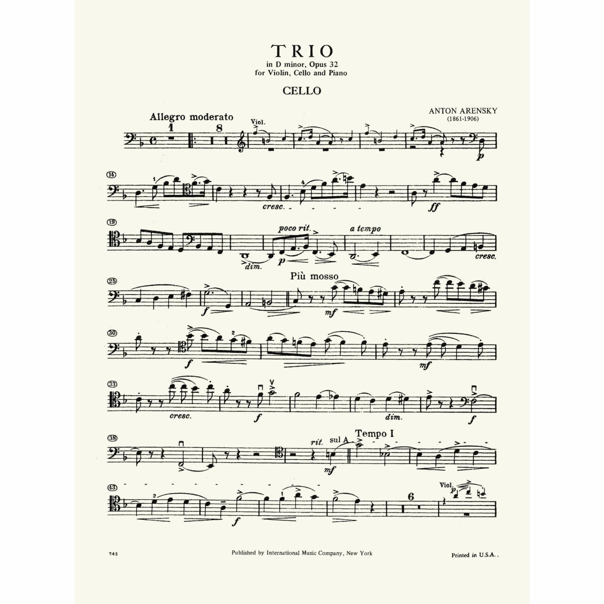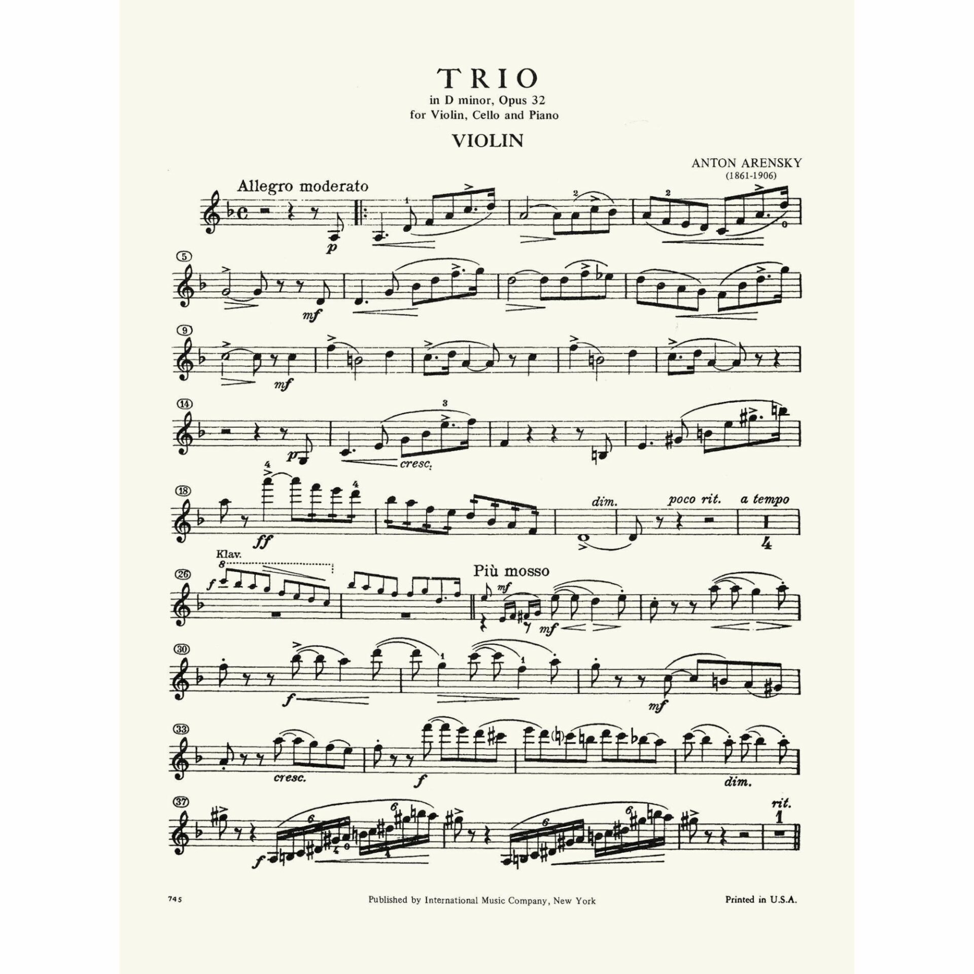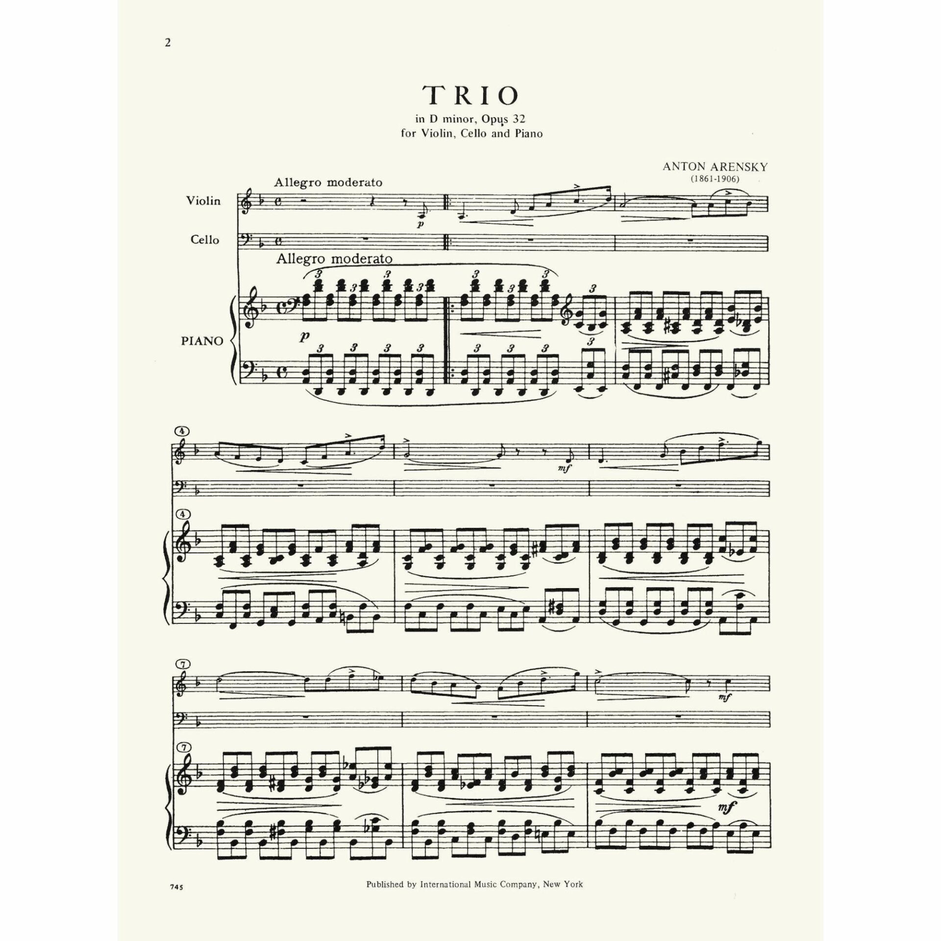Arensky — Piano Trio in D Minor, Op. 32