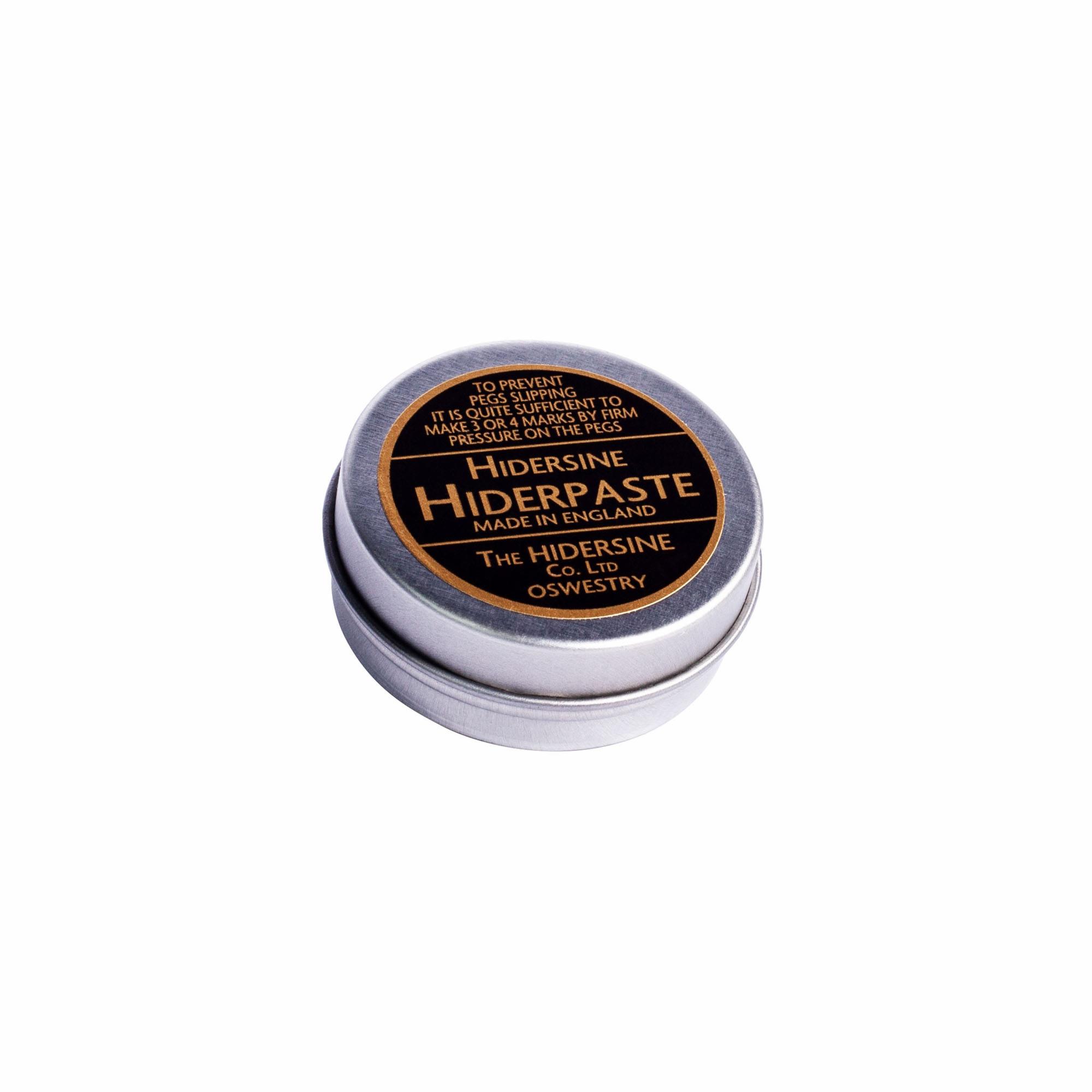 Hiderpaste is a solid compound that comes in a round, flat tin. Remove peg and apply to pegs to prevent slipping.