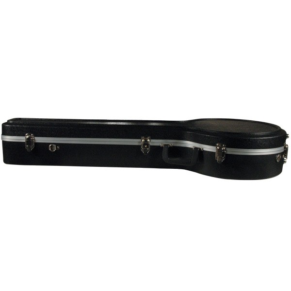 Black textured thermoplastic exterior. Four sturdy metal latches, fitted flange for secured closure. Comfortable ergonomic, contoured handle. Black plush interior. One accessory pocket, straps included.