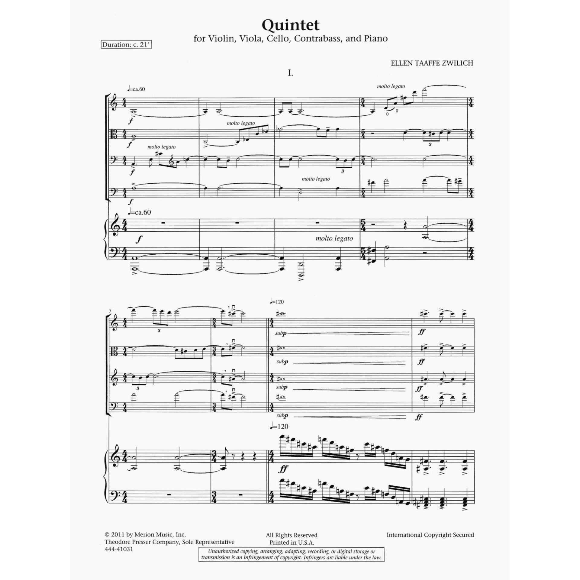 Instrumentation: Violin, viola, cello, bass, and piano